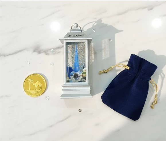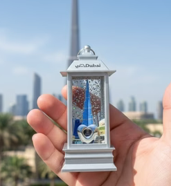 This elegant Dubai-themed lantern souvenir showcases the iconic Burj Khalifa beautifully placed inside a transparent glitter display. Designed with shimmering sparkle effects and a premium lantern-style body, this decorative piece captures the luxury, culture, and modern charm of Dubai.